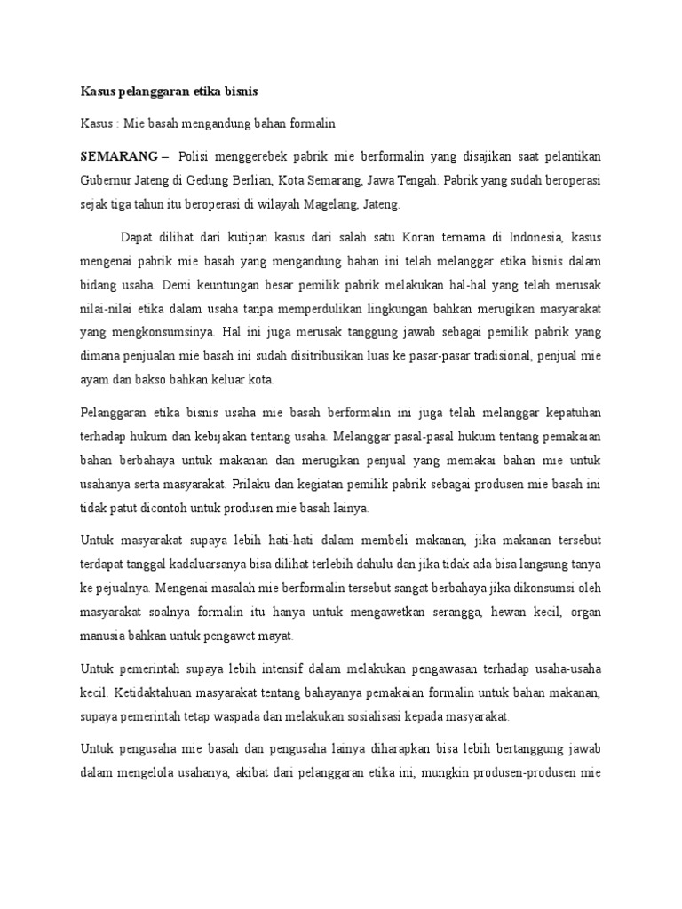 Jadi, secara hakiki sasaran etika bisnis adalah perilaku moral pebisnis yang berkegiatan ekonomi. Kasus pelanggaran etika bisnis pada pt. Kasus ini pun terus bergulir hingga 2017.