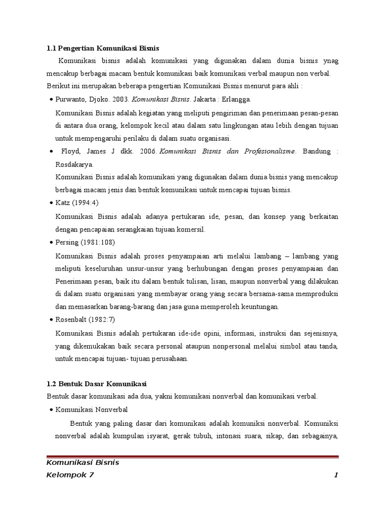 Bertujuan berarti komunikasi harus memiliki tujuan yang telah ditetapkan sebelumnya sejalan dengan pencapaian tujuan organisasi/lembaga. Komunikasi adalah proses mengirimkan, menerima dan memahami gagasan dan perasaan dalam bentuk pesan verbal atau nonverbal secara disengaja atau tidak disengaja (berko, et. Komunikasi bisnis mencakup berbagai hal yang berkaitan dengan komunikasi baik secara lesan atau tulisan dalam dunia bisnis.