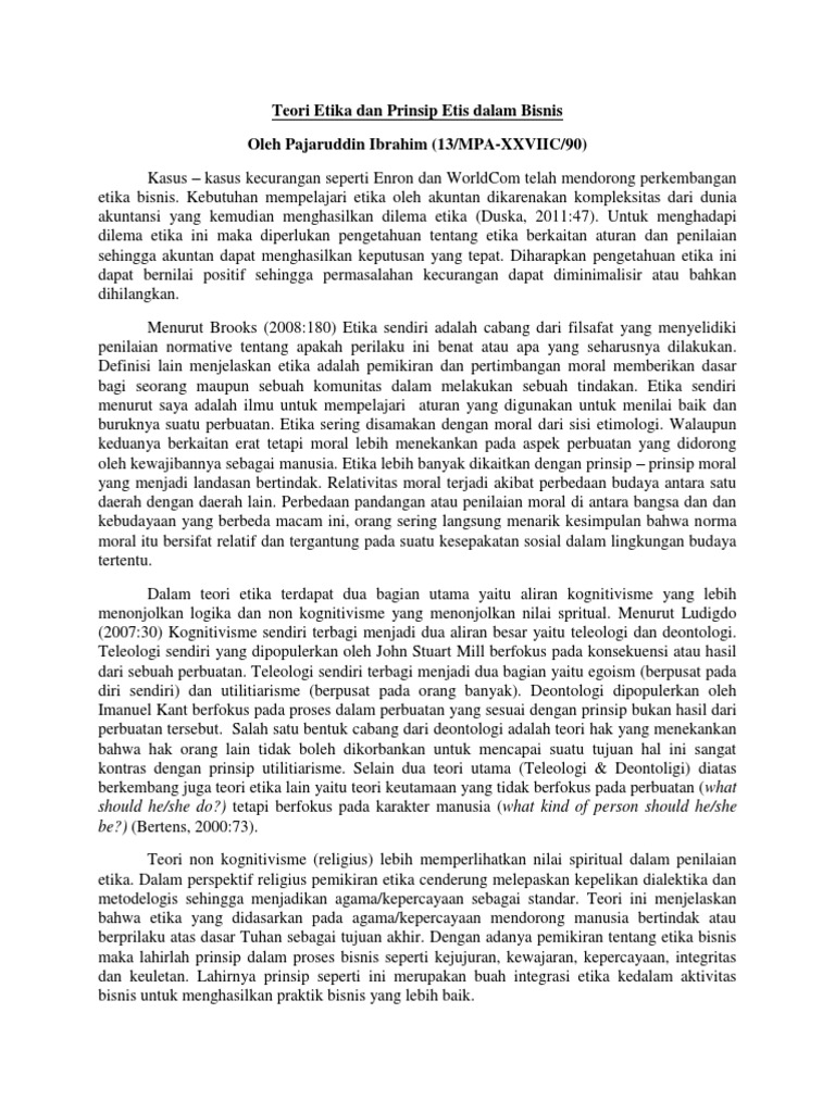 Teori Etika Dan Prinsip Etis Dalam Bisnis