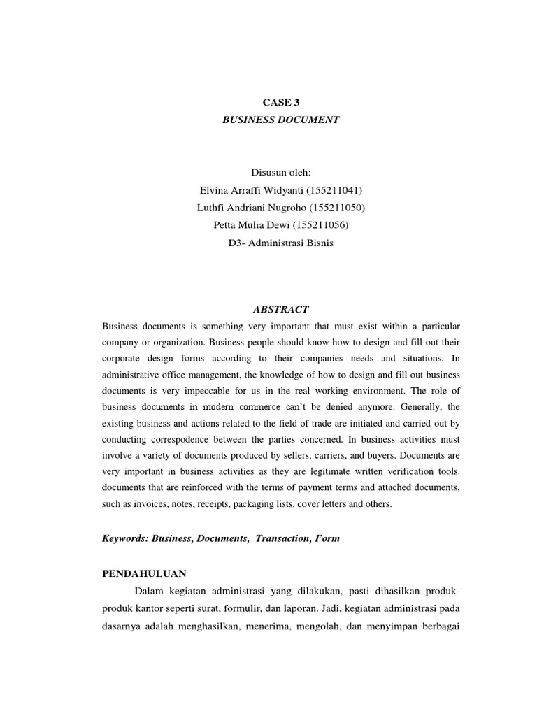 Coba kalian kerjakan latihan soal berikut ini di buat dalam lembar tugas di ms office kirim ke email ibu. Umumnya usaha dan tindakan yang ada sangkut pautnya dengan bidang perdagangan dirintis dan dilaksanakan dengan melakukan korespondensi antara pihak yang bersangkutan. Jadi, dokumen bisnis merupakan sesuatu yang sangat penting yang harus ada dalam sebuah perusahaan atau organisasi tertentu.